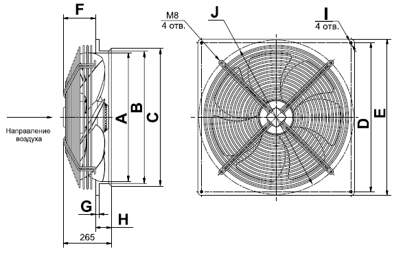 | ВО-4М630В | 220/50 | 6400-11435 | 200-62 | 1360 | 750 | 3,5 | 805х805х218 | 14,0 | 78 |